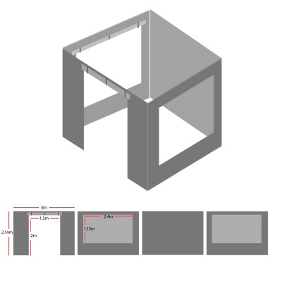 1 Gestell - 1 Dachplane - 3 Seitenteile + 1 mit Tür