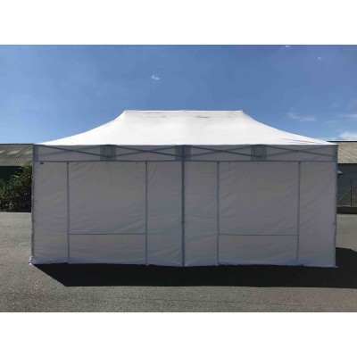 Les bâches latérales de ce pack complet sont composées de 3 murs pleines avec 1 porte en 380g/m² polyester PVC.