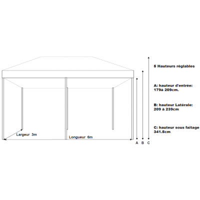 • Comprend la structure, la bâche de toit, 3 bâches pleines et une bâche porte zippée