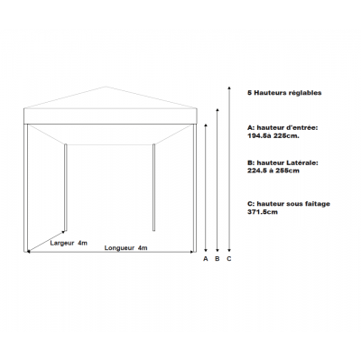 ▪ Comprend la structure, la bâche de toit, 3 bâches pleines et une bâche porte zippée