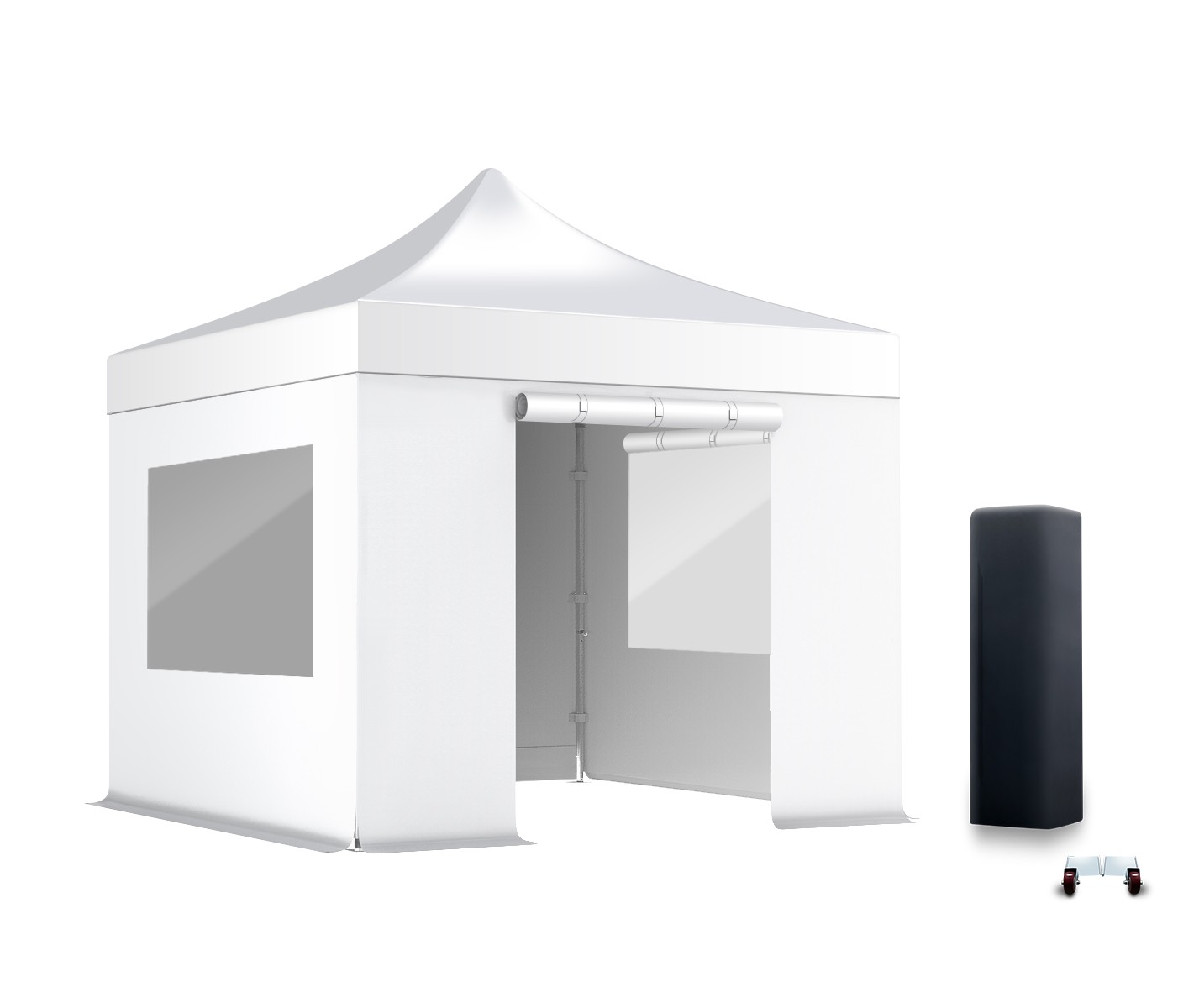 Les bâches fenêtres avec rideaux sont toujours configurées sur le côté le plus court (par exemple, pour une tente pliante 3x4,5m, les deux fenêtres panoramiques se trouvent sur les côtes de 3m)