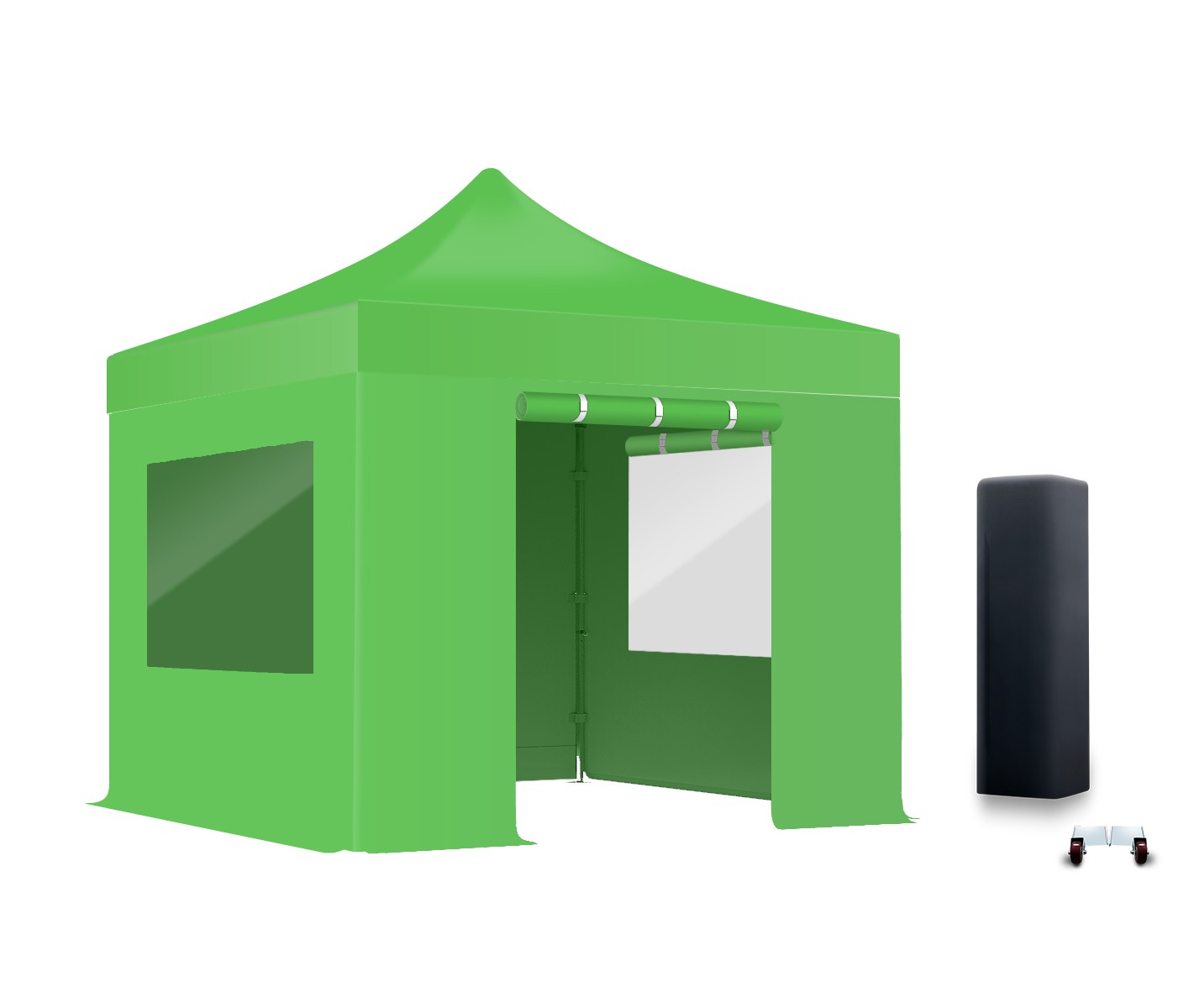 Les bâches fenêtres avec rideaux sont toujours configurées sur le côté le plus court (par exemple, pour une tente pliante 3x4,5m, les deux fenêtres panoramiques se trouvent sur les côtes de 3m)