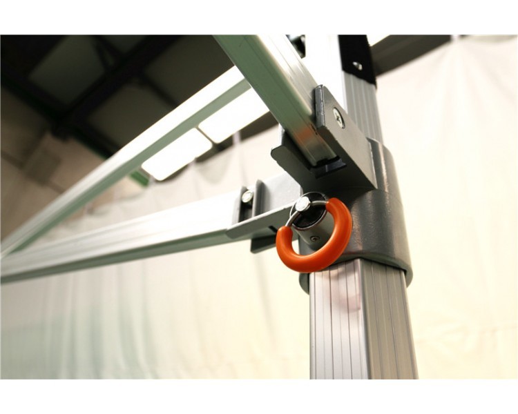 Fixation des parois sur la bâche de toit par un velcro de fixation et aussi pour les cotés, (incassable, mieux par rapport une fermeture classique). Les parois sont complètement amovibles et indépendantes.