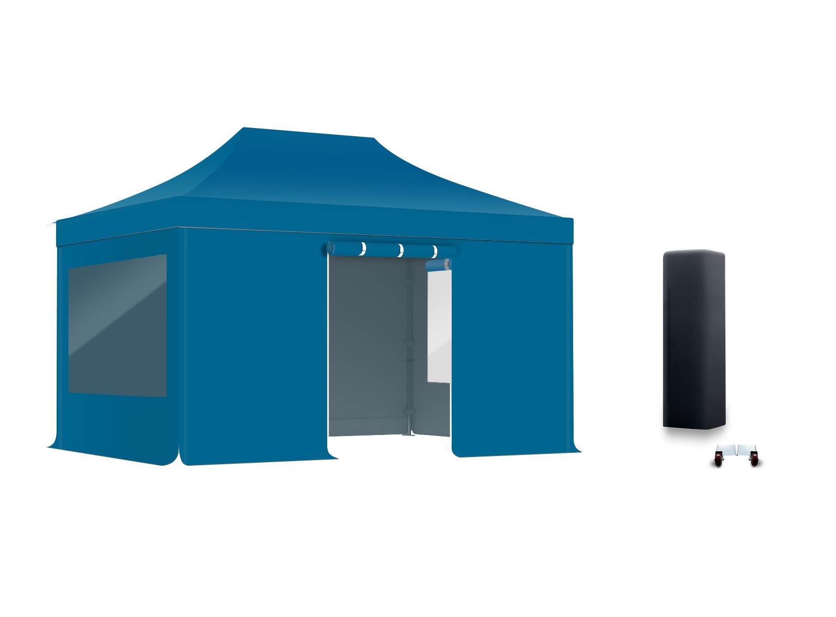 Les bâches latérales de ce pack complet sont composées de 3 murs pleines avec 1 porte en 380g/m² polyester PVC.