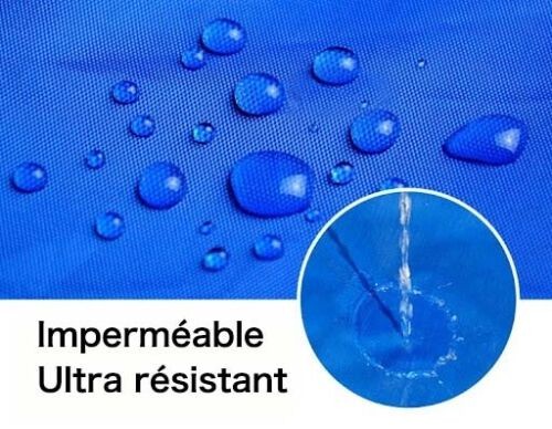 L'entretien se fait avec de l'eau claire, un savon doux et une éponge (il n'est pas conseillé de passer la bâche à la machine à laver). Plusieurs coloris au choix selon les besoins et les goûts.