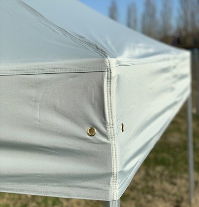 Gouttière imperméable 380g/m² polyester enduit PVC pour tout modèle de nos tentes pliantes. Uniquement en couleur blanche et fixation via velcro.