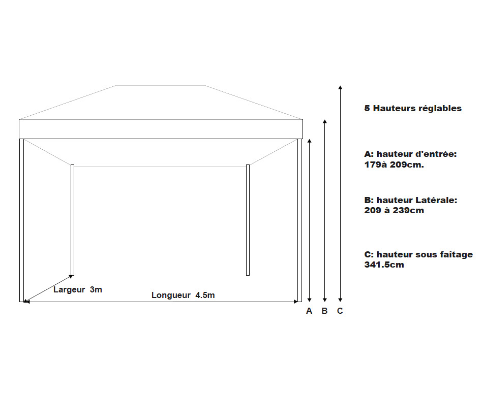 | Hauteur latérale | mini. 1,80m - maxi. 2,10m |