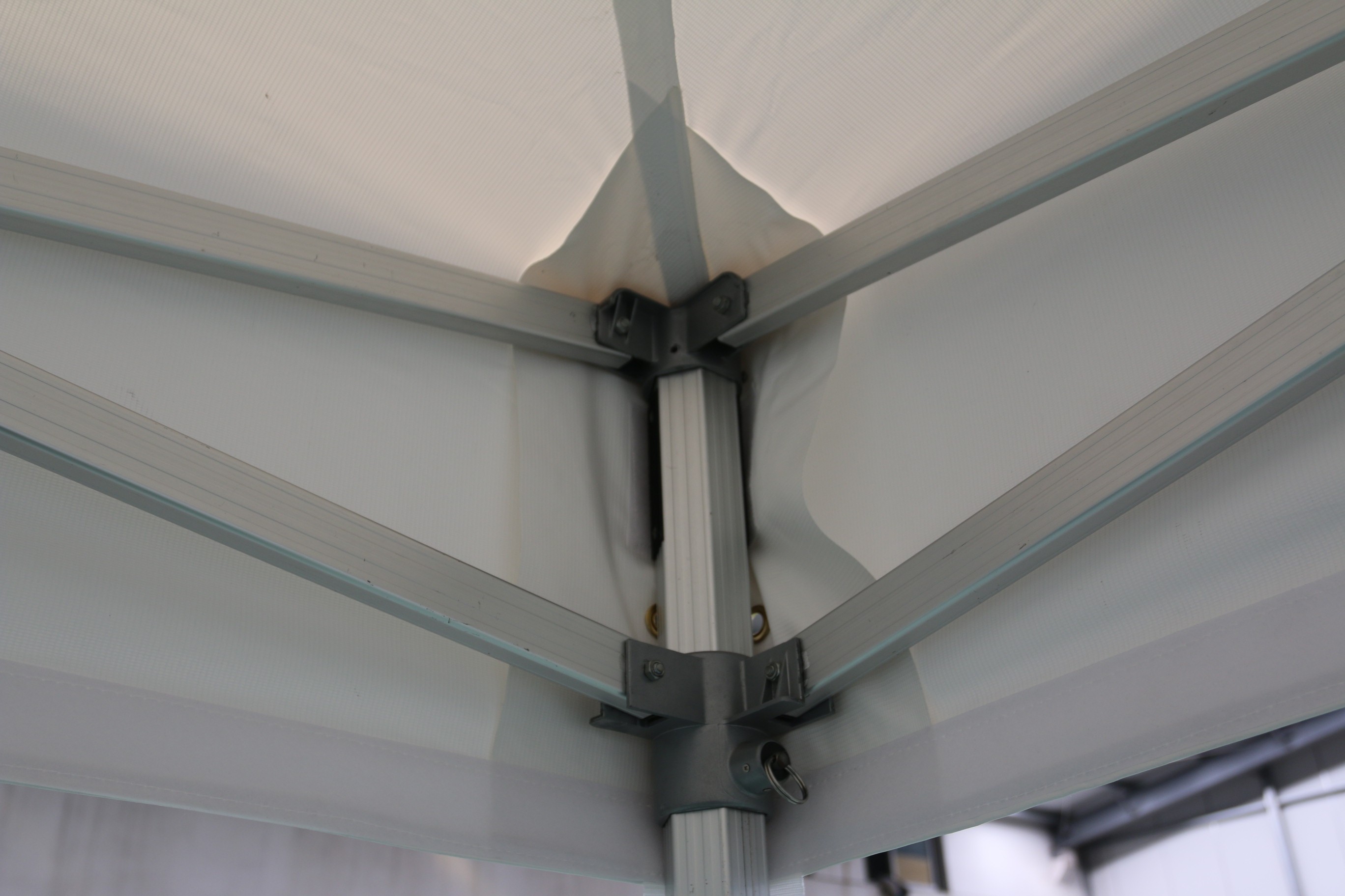 Gouttière imperméable 380g/m² polyester enduit PVC pour tout modèle de nos tentes pliantes. Uniquement en couleur blanche et fixation via velcro.