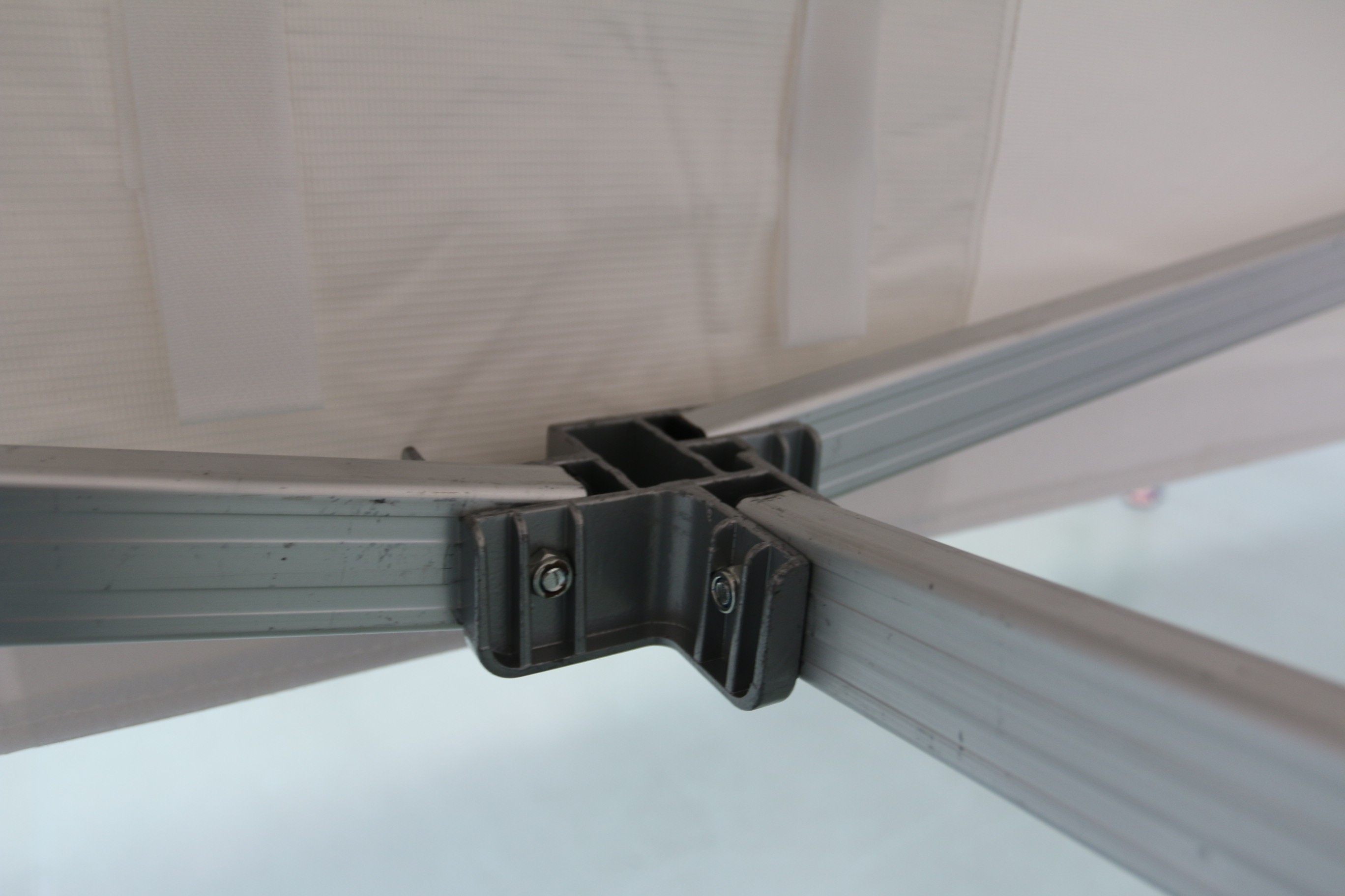 Connecteurs métalliques pour accrocher deux tentes pliantes entre elles. Il existe 3 modèles différents selon la gamme de la tente pliante.