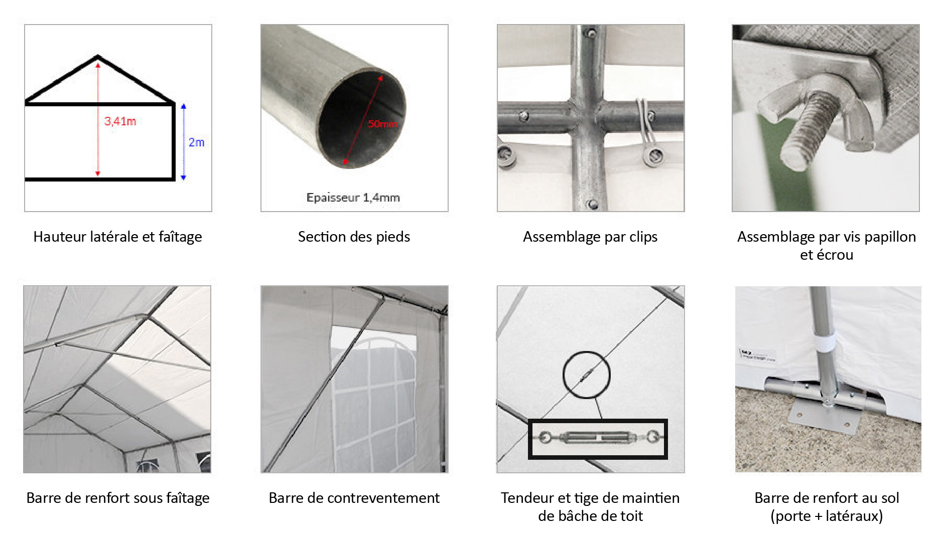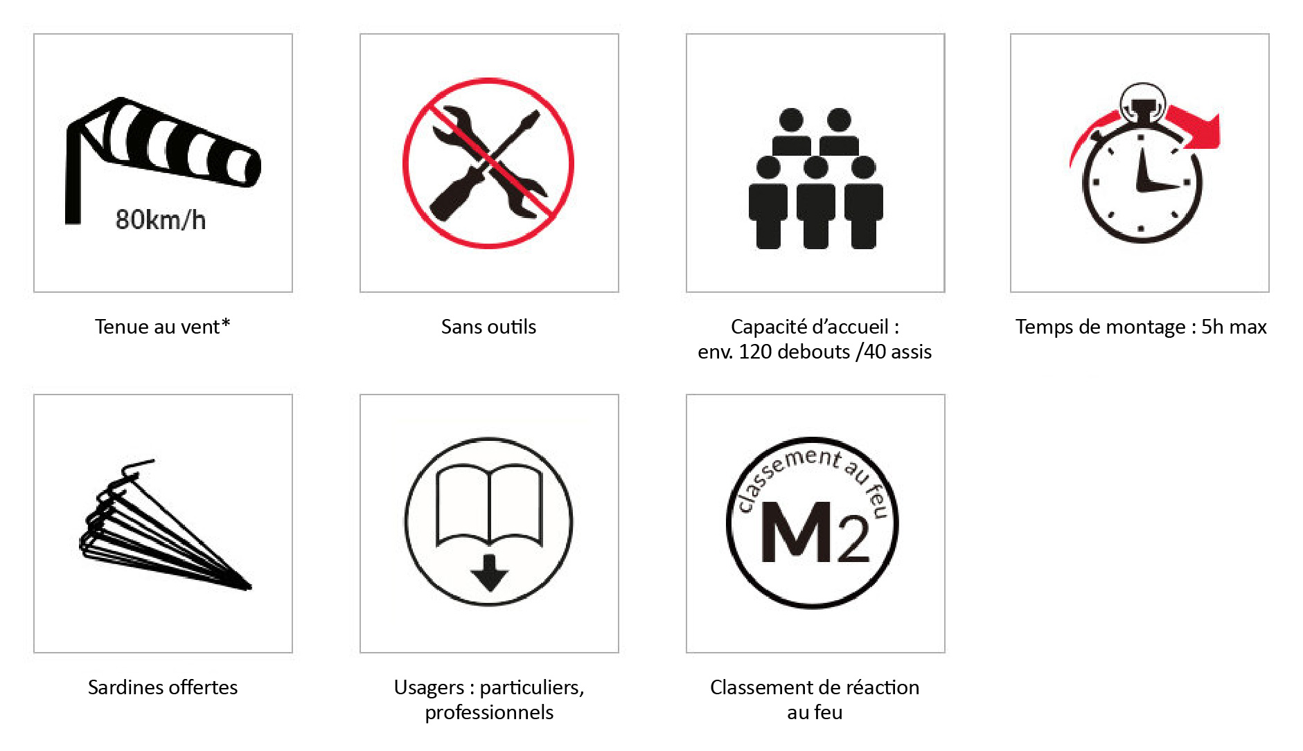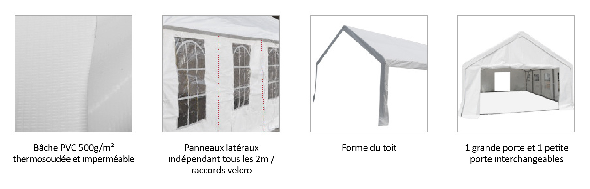 Ce barnum de réception 5x8m est idéal pour les événements professionnels comme privés : mariages, foires, réceptions ou fêtes en plein air. Conçu pour un usage fréquent, ce chapiteau tubulaire semi-professionnel allie robustesse, sécurité et excellent rapport qualité/prix. Il est équipé de bâches en PVC 500g/m² classées M2 (norme anti-feu), parfaitement adaptées à un usage intensif. Sa structure renforcée avec barres au sol (38mm) et sous faîtage garantit une stabilité optimale, même par conditions météo difficiles. |