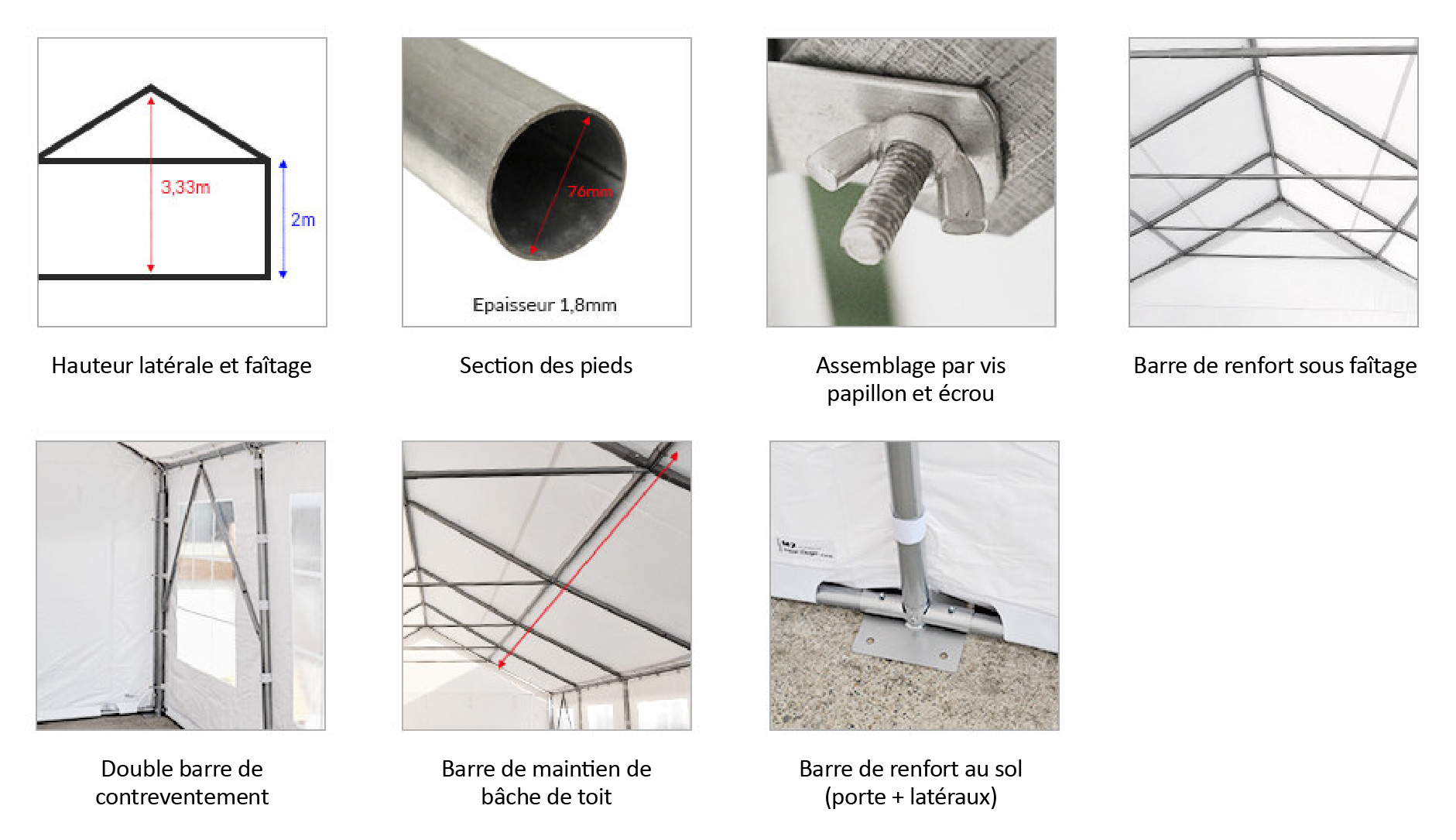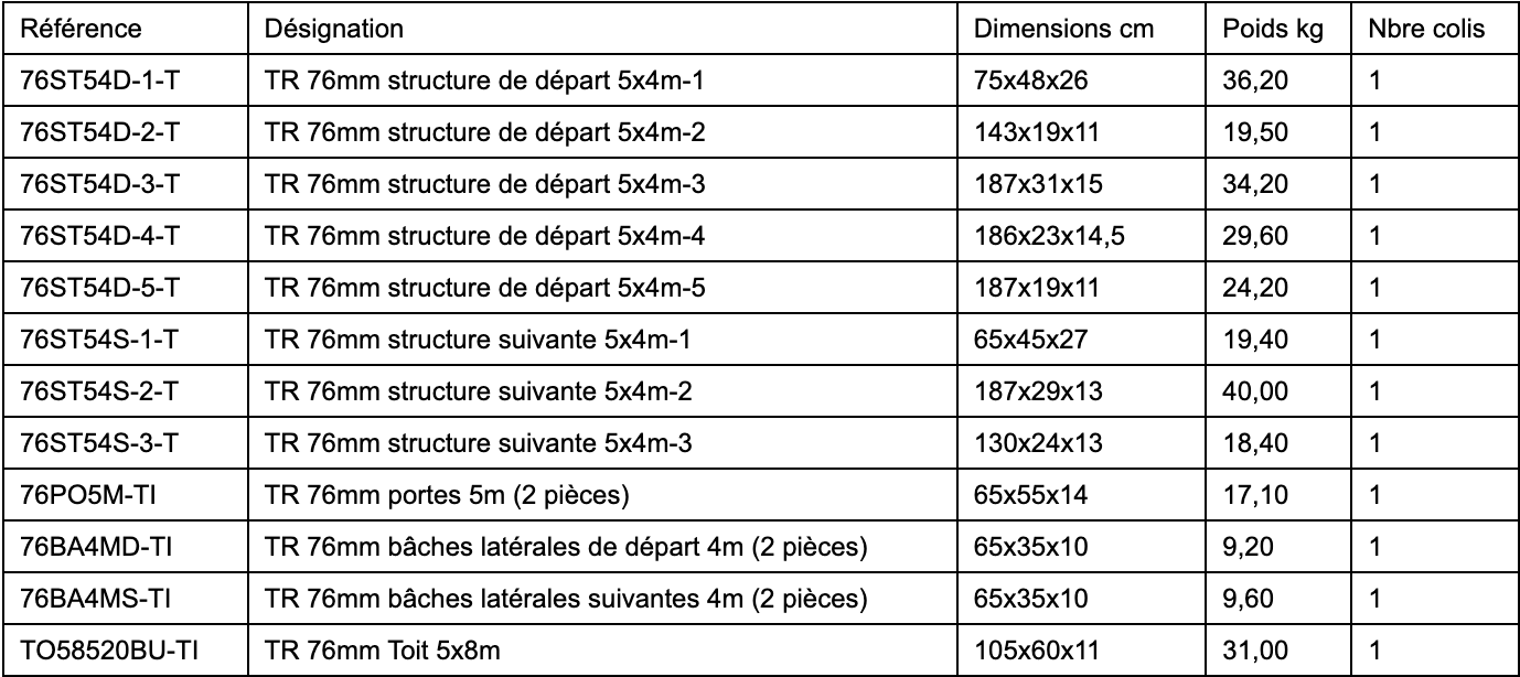 Le barnum de réception 5x8 m est livré complet, comprenant la structure, la bâche de toit, les bâches latérales et les pignons, sans nécessiter d’outil pour le montage. Garantie 10 ans, cette gamme de chapiteaux est spécialement recommandée pour les professionnels et les collectivités à la recherche d’un matériel robuste adapté à une utilisation événementielle intensive. La gamme 76 mm, destinée aux professionnels, propose des structures et des bâches de haute qualité, conformes à la réglementation CTS pour l’accueil du public.