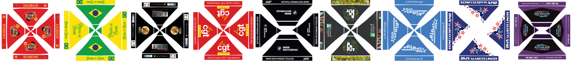 Pour un toit imprimé, vous pouvez choisir d'imprimer 2 faces, 3 bandeaux, ou la totalité du toit, le tarif restant le même.