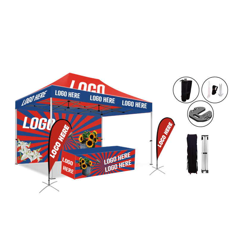 - Nous vous proposons également des oriflammes (attacher sur le pied de la tente), qui peuvent rendre votre stand encore plus visible.